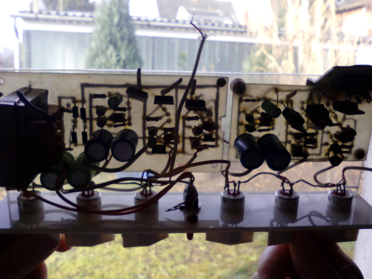 A tranyókat és az ellenállásokat kimértem, azok jók. Még nem mentem végig minden kondin, de azok is jónak tűnnek.