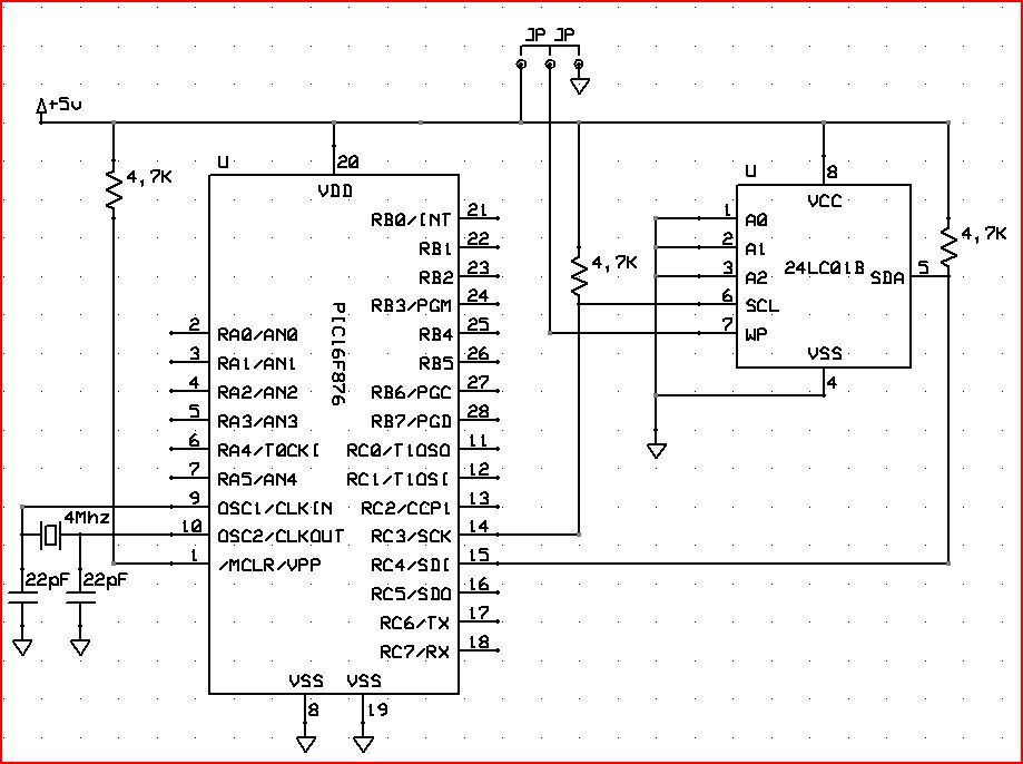 most kezdtem el programozgatni pic-t és lenne egy problémám. pic16f876hoz(4mhz-n jár) akarok kötni egy 24lc01b memóriát hogy az lcdbe a saját karaktereimet onnan töltes át a pic. ja és pbp-ben programozgatok. próbáltam először úgy hogy a scl és sda lábakat felhúztam 5Vre egy-egy 4,7K ellenállással, de semmi. beírás után kifele csak 16osokat olvasott. próbáltam csak simán, úgy meg csak nullák jöttek vissza. a scl-t a C3ra az sda-t a C4re kötöttem. már a memóriát is kicseréltem, de akkor is ugyan ez volt. biztos nagyon amatőr kérdés,de itt most elakadtam (ha esetleg "volt már ilyen...", akkor légyszi egy linket, mert legalább egy órát kerestem, de nem találtam) köszi