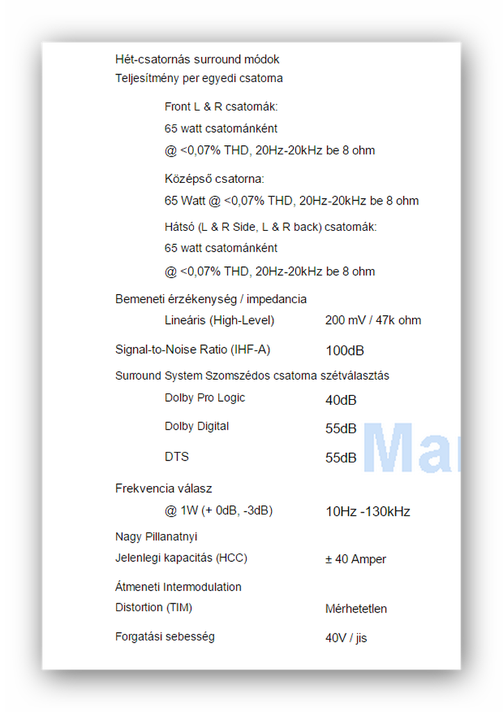 A forgatási sebességet a HK AVR 445 adatlapján olvastam lásd. a mellékelt képen.