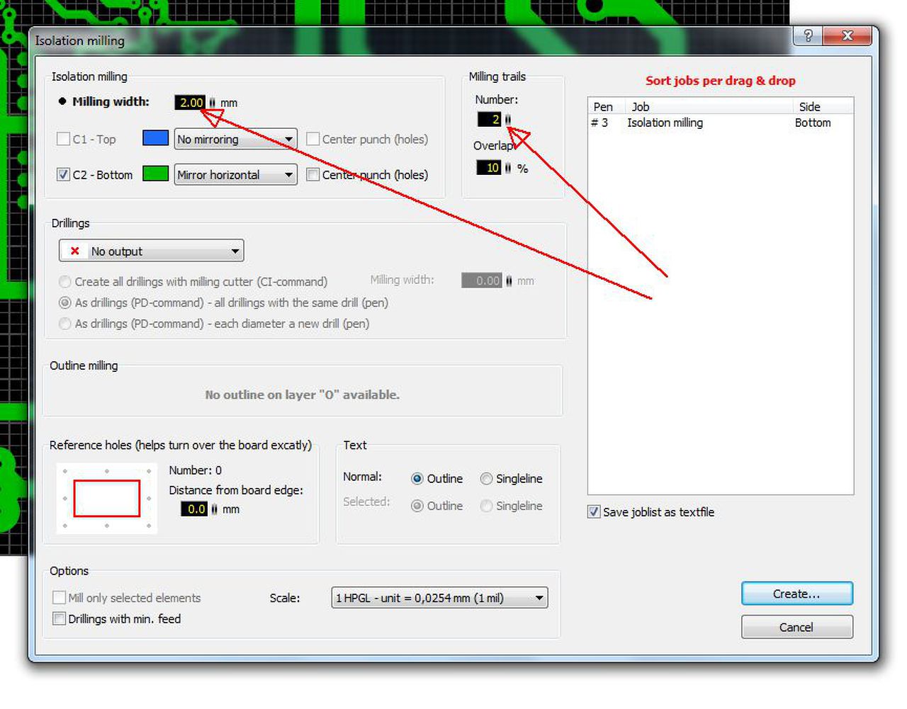 export menüpont Isolation Milling hpgl almenü