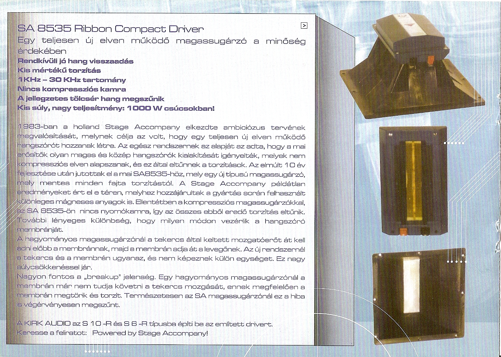 Külön elmondanám neked még a Kirk audio hangosítási dolgokat!Mikor én még a legelső bulin voltam az a Hyperspace volt még budán nem Szentendrén,ott ilyen hangfalak voltak a kis teremben mind a 4 sarokban! Hangnyomással semmi probléma nem volt,csak fognom kellett a gyomromat mert úgy ütötte a 130dB hangnyomás!Aztán még Dabason is volt egy szabadtéri buli ugyan ilyen hangfalakkal,ott sem volt panasz!Szerintem te csak olvasgass és tanúlj a hangosítással kapcsolatos dolgokról!!