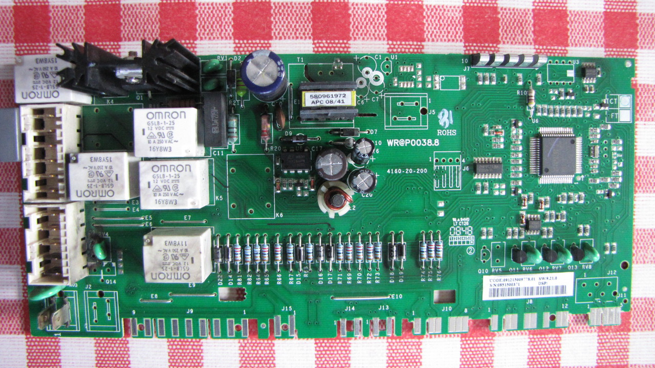 Sziasztok! Adott egy Tricky Bendix 850 fordulatos mosógép. Mindent megcsinál, a végső szivattyúzás után elkezdi a centrit felpörgetni, s mikor a speed signal eléri a 10V ~ t akkor leáll, mintha véget érne a program. Mosás közben 5V~t mutat a műszer. A gép szinte alig ment, de azért kitisztítottam mindent, rámértem a vízszint-jeladóra, látszólag minden rendben. A fényképről hátha ismerős lesz valakinek, honnan koppinthatták. Valami ötlet esetleg, merre tovább? Köszi: Mike