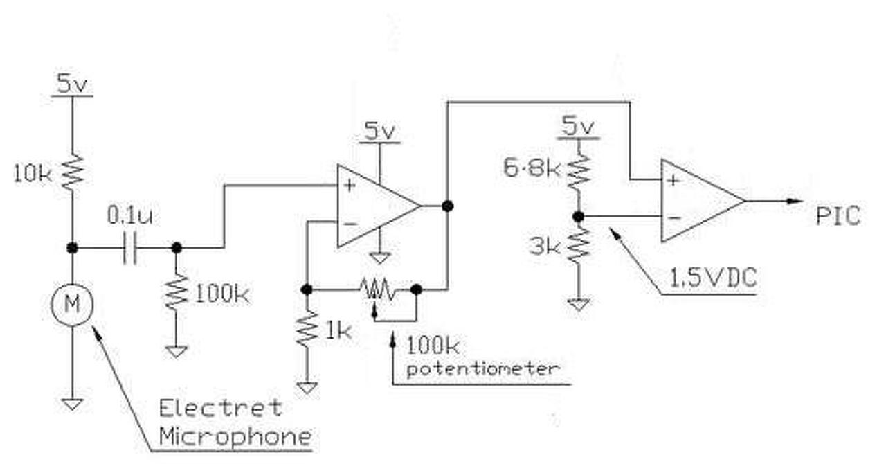 Ha a LED (sor) fényerejét szeretnéd szabályozni, akkor az első, a mikrofon áramkörrel van gond, mert annak kimenete nem arányos a mikrofon jelével.