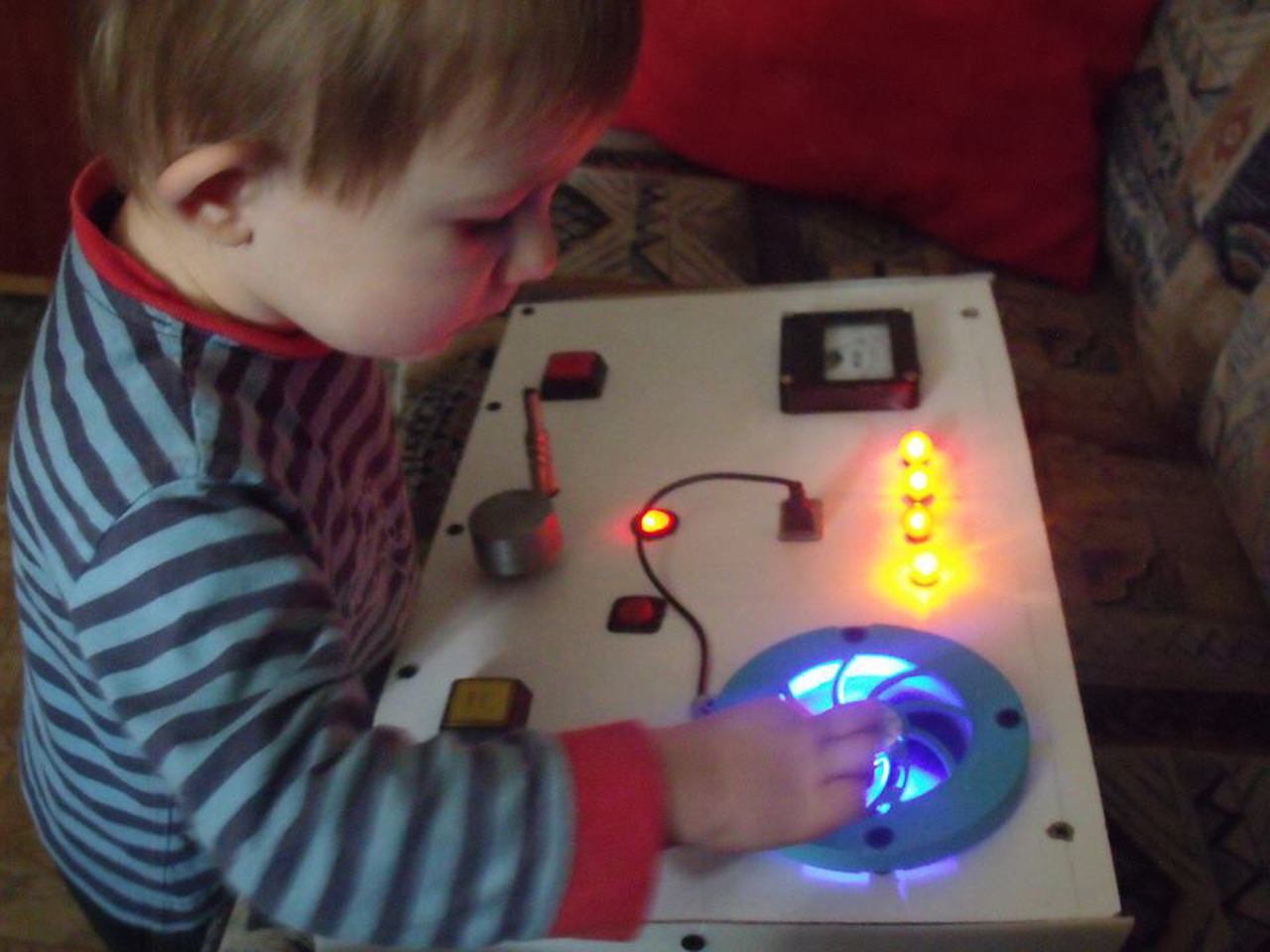 Ma a 2 éves fiamnak építettem egy "ketyerét" melyen lehet tekergetni,kapcsolgatni,nyomkodni