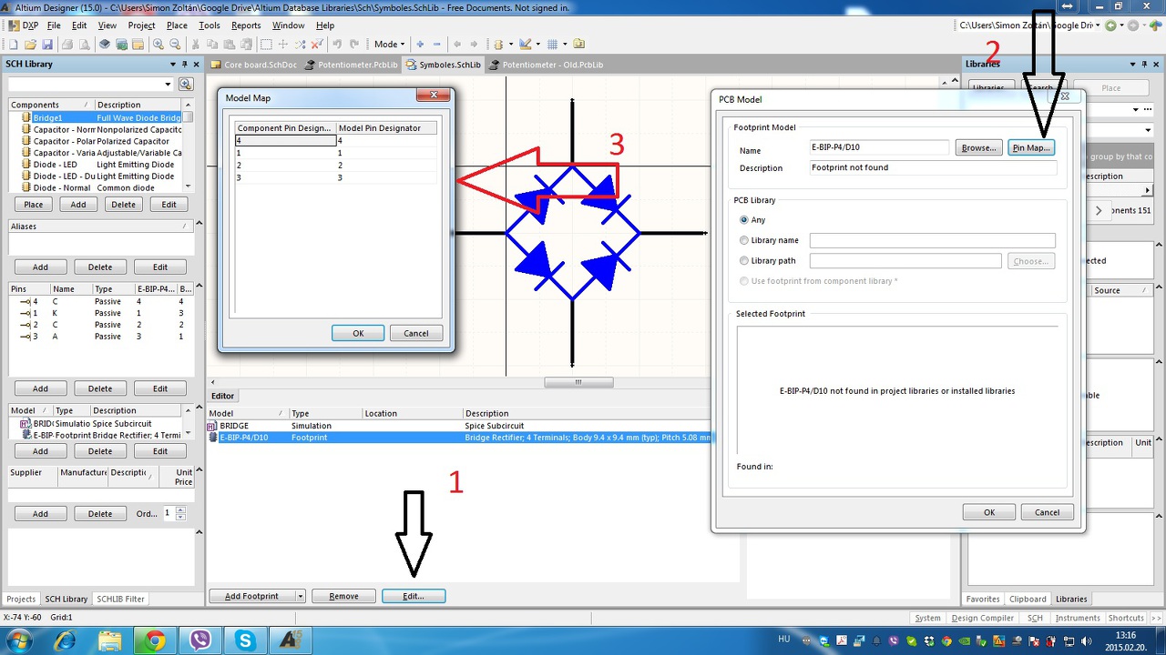 Az én rendszerem úgy működik hogy az SCHLib-ben van egységesítve. Pl. Tranzisztor. E=1, C=2, B=3 FET D=1,C=2, G=3, csak azért hogy ha dual Gate a fet akkor ott G1 =3, G2 = 4. Ezek után, a footprint padjait átszámozva és más néven - pl TO92A(A), TO92A(B), TO92(x) - mentve valósítom meg a különféle bekötéseket. Igy tehát egy BC182 mondjuk TO92A(A), közben a BC212 meg TO92A(C). Igy symbole 1-es lába a footprint-en is az 1-esre megy, csak éppen bekötésenként, az az 1-es láb fizikailag van máshol. Mindezt azért, mert jelen tudásom szerint az adatbázis könyvtár nem támogatja a pin-mapping-ot, és számomra egyébként is csak keverésre ad okot hogy az 1-es megy a 3-asra, a 2-es az 1-esre stb stb. A hozzászólás módosítva: Feb 1, 2015
