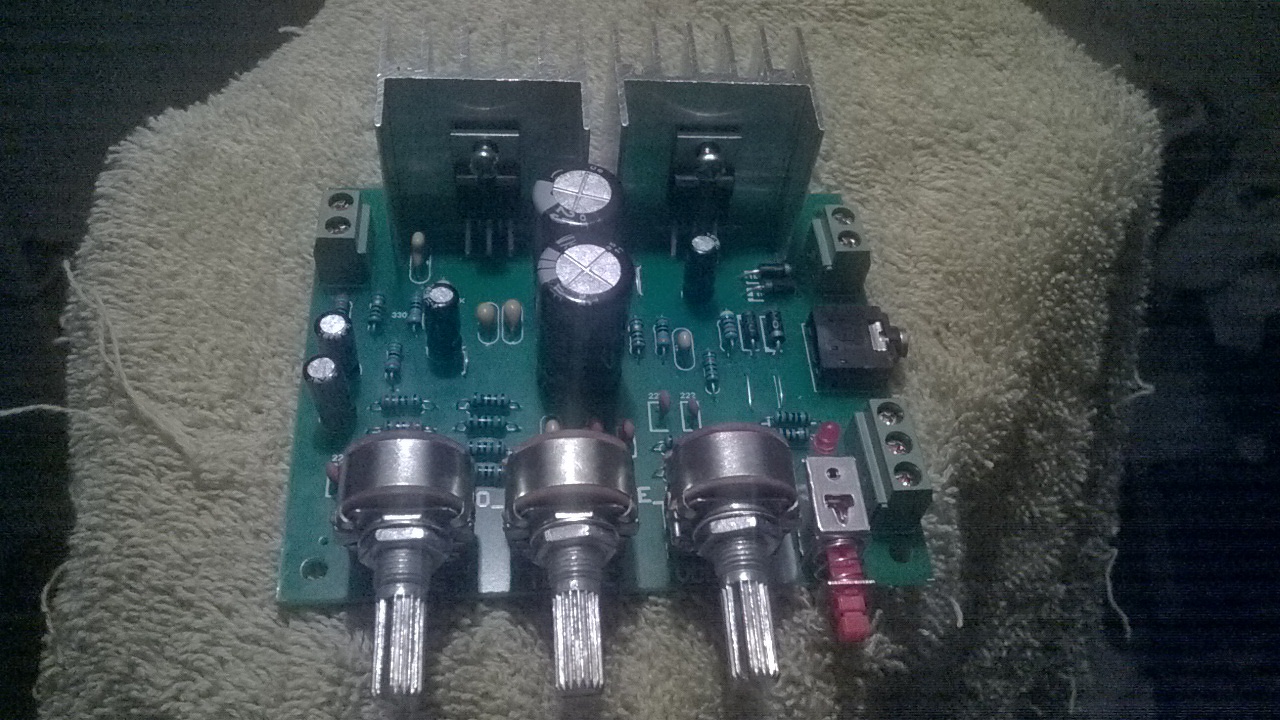 Hello, íme pár kép a (hosszú 20 év kihagyás után megint épített) kis erőlködőmről. 2 x TDA2040, a segítségetek/tanácsaitok alapján tökéletesített, hozzá készült 'low-budget' hangfalakkal. Jó barátaim számára építettem, amolyan "anti-PC-speaker" szellemben. Vagyis lebeszéltem őket valami elméretezett műanyagházas csoda megvételéről (durván 8-12 ezer Ft nagyságrend, de én max. a 10-15 évvel ezelőtti /egyébként TDA2030-akat tartalmazókat!/ tartom max. elfogadhatónak!)