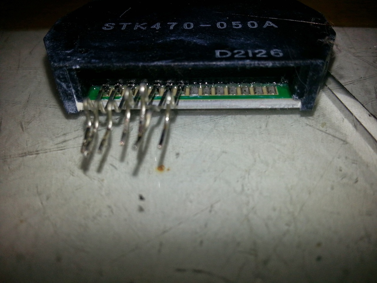 Igen ki lett cserélve mind a két csatorna + meghajtója. Furán van megoldva az IC csatlakozása gyárilag kábelen keresztül egy kisebb NYÁKra megy. A nyákról kis ráhagyással levágtam a régi STK-t és a lábakra forrasztottam rá, mert már eléggé sokat volt forraszva. Mérőműszerrel le volt mérve minden jól kapcsolódik. Azt hiszem lesz ami lesz megfogom próbálni égő nélkül.