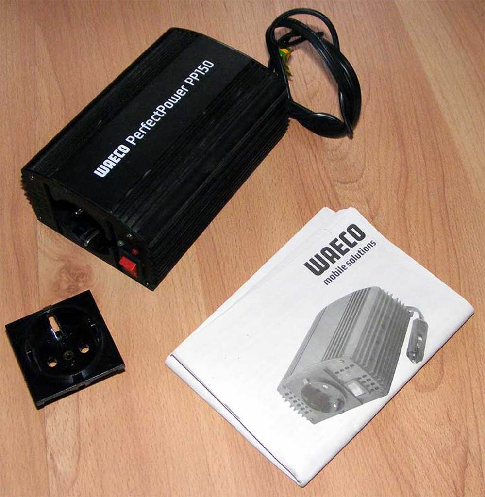 Első kacat: WAECO 24V-os inverter. Hibája: 230V-os aljzat műanyag része el van repedve, szivargyújtó dugó hiányzik (beépítve volt használva). Egyébként működőképes a kütyü.