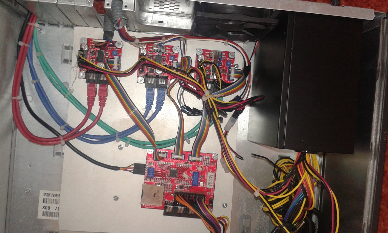 A sebesség 9600 és a ReplicatorG-vel égettem újra a RepRap v2.4-es hexet . extruder fej nincs hozzá de egyenlőre az a cél hogy mozogjon a mechanika (ha megmozdul valószínűleg teljesen újjáépítem a mechanikát)