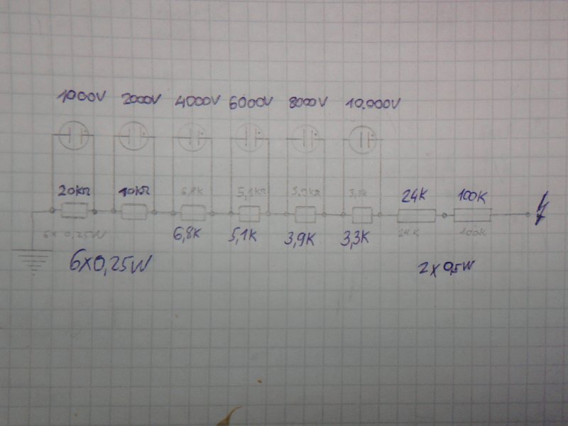 ügye itt a glimmek ~65-105V között gyújtanak, tehát megcsinálod ezt az ellenállás sort, ami azért kell hogy ne üsse át az ellenállásokat a nagyfesz.