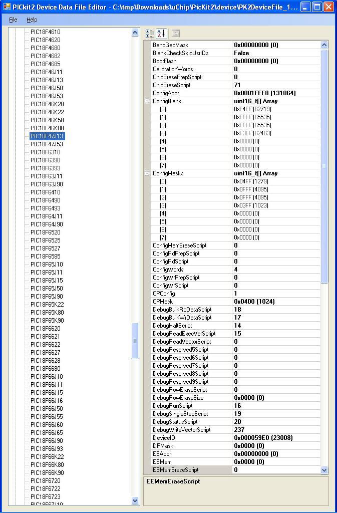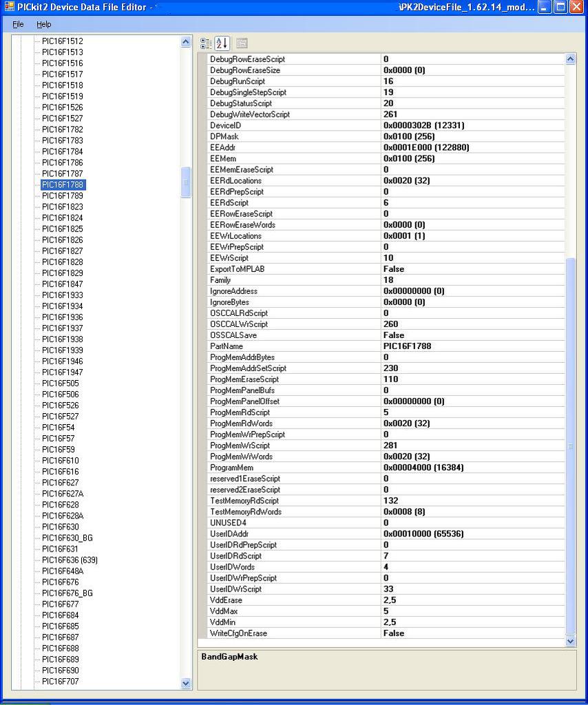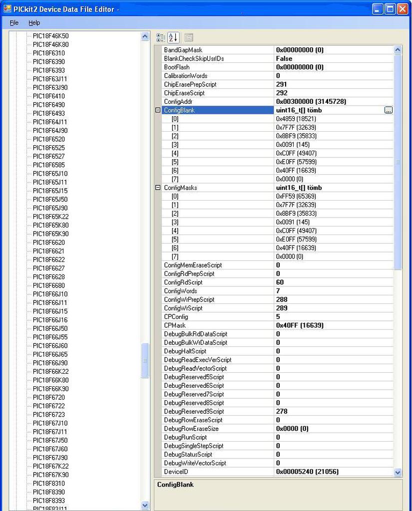 A PICkit2 telepítési könyvtárában a Pk2Devicefile.dat átnevezése, a módosított, mentett állomány bemásolása Pk2Devicefile.dat néven. Sok szerencsét.