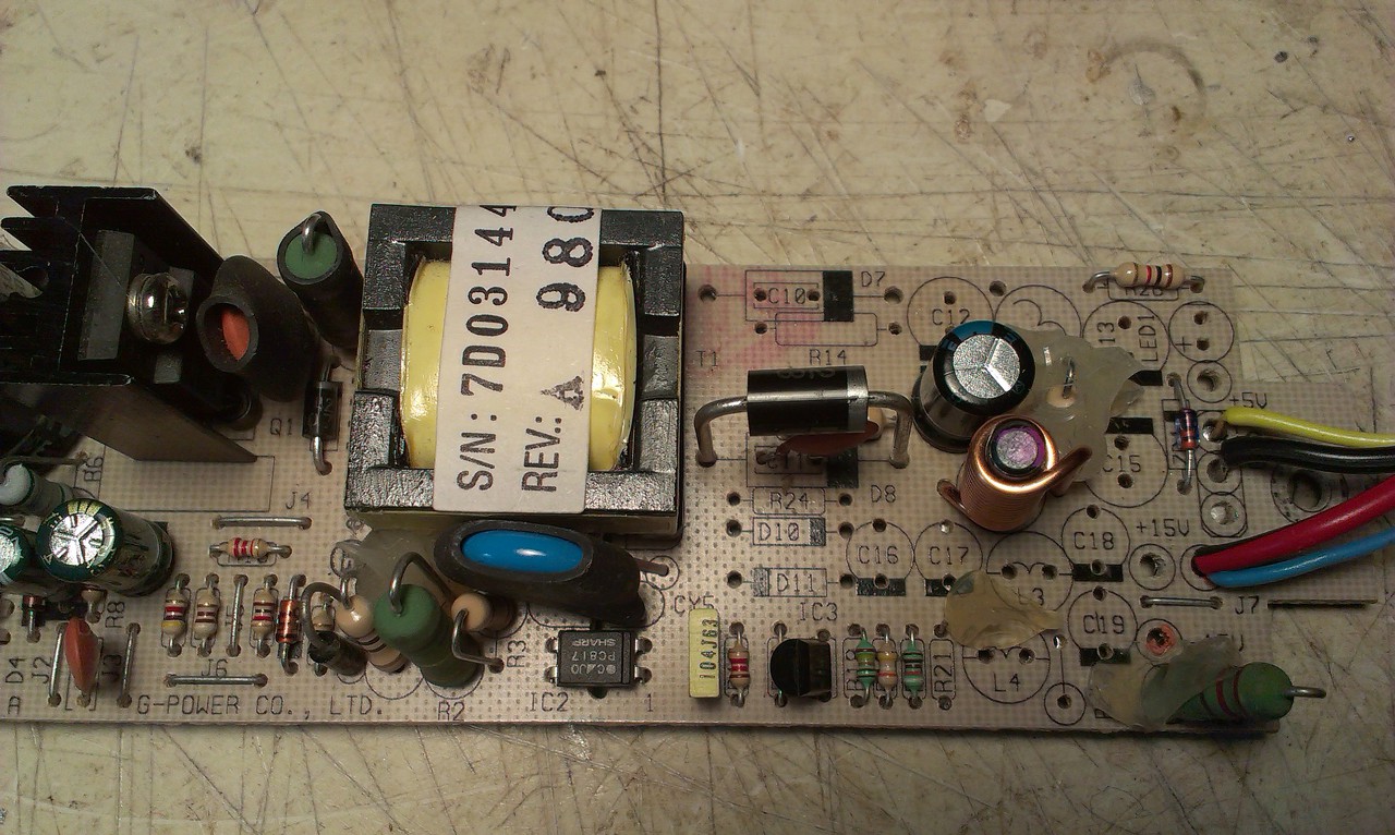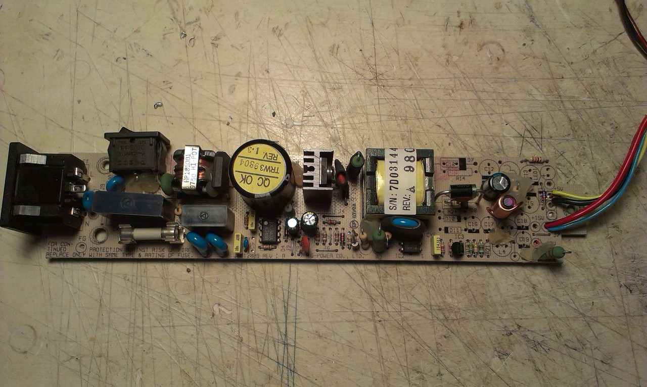 Kapcsolóüzemű. Hasonló felépítésű, mint egy lcd monitor táp, csak nem 5 és 12V-ot állít elő, hanem 5, +/-12, +/-15-öt gyárilag. Ez a scanner gyári tápja volt, aminek a vezérlése halt meg, így került hozzám a kuka helyett.