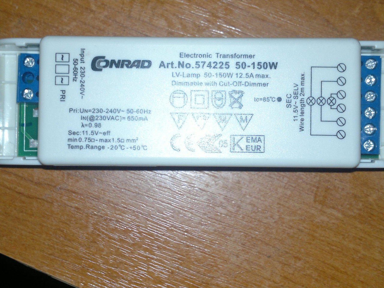 Ebbe? Sehogy. Ez egy halogén izzó táp. Kapcsolóüzemű és kb. 12V-ot állít elő. Rá van rajzolva, három izzót tud ellátni.