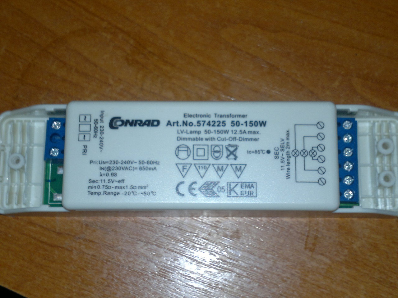 Ebbe? Sehogy. Ez egy halogén izzó táp. Kapcsolóüzemű és kb. 12V-ot állít elő. Rá van rajzolva, három izzót tud ellátni.