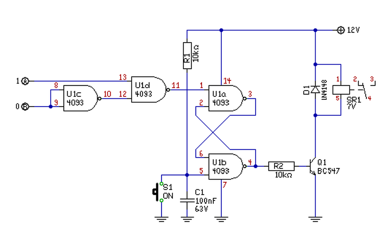 Ott van az "ON" gomb. (De egyébként nem Reset, hanem Set van. hiszen meghúzatni akarod a relét..) De ha logikával szeretnéd megoldani, akkor is ugyan ez az elvi megoldás van.