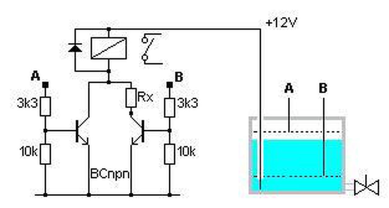 vagy 2 érzékelő, mind a 2 érzékelő kikerül a vízből feltölti a felső érzékelőig, és legközelebb megint akkor kapcsol be ha mind a 2 érzékelő kijön a vízből. egyszerű olcsó alkatrészekből kellene (hogy én is fel tudjam fogni).