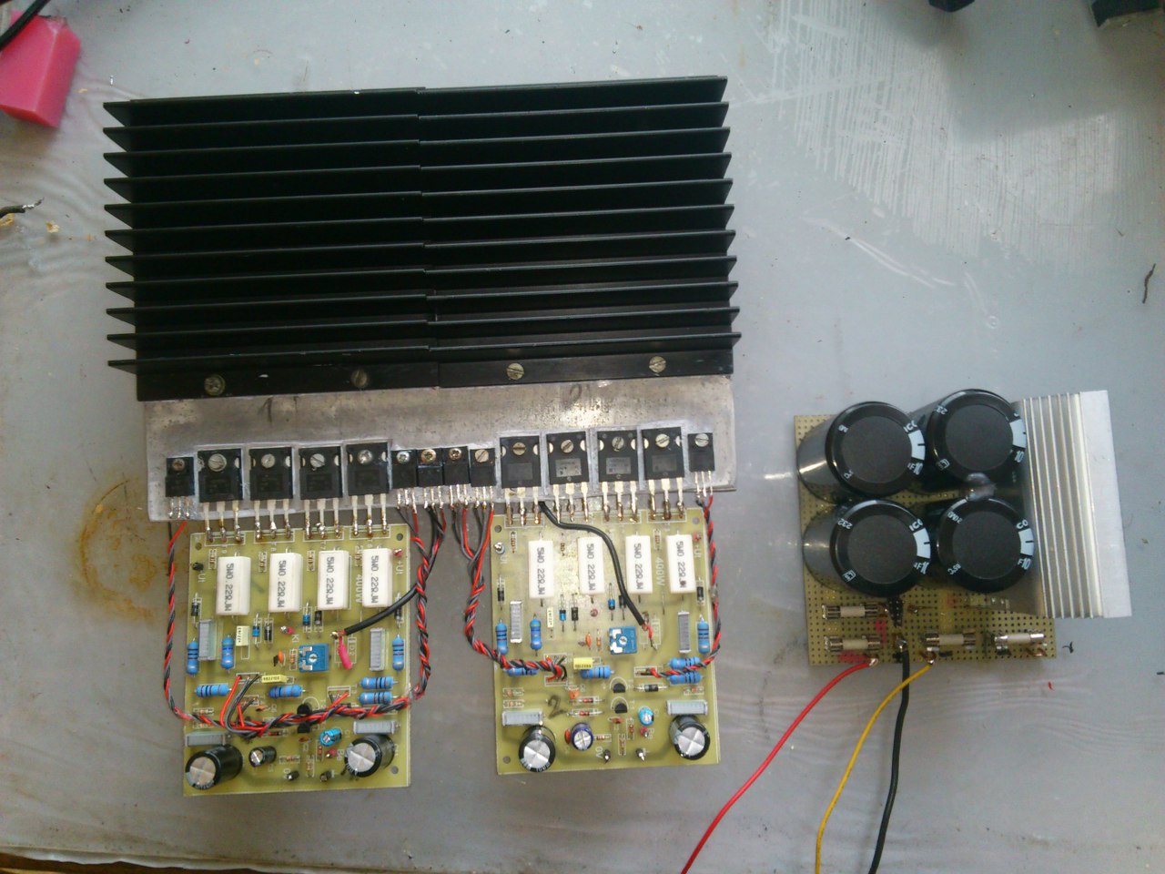 Épp azért nem akartam max feszen, gondoltam 250-300wattot 8ohmon csak elbír. 200w is ép, hogy megvan 75v-al. Majd letesztelem mennyire megbízható, ha egy dobozba is beépítem, aktív hűtéssel , kopp gátlóval, cilp-el stb. Élesztésnél én is +-55v-al próbálgattam ott sem bírtam magammal meghallgattam és mértem. 95w 8ohm 145w 4ohm, de fűtött ott is rendesen, sőt 3-20 watt között is igen fűt. Azért félelmetes, mert a tranyó 85-90fok pár másodperc alatt, és a borda nehezen veszi át a hőt, ha lenne réz lemezem azt is kipróbálnám.