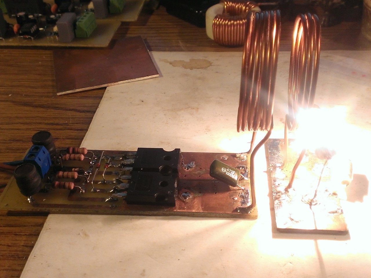 Adó oldalon legyen 15 menet a vevőn 8 körül. Adó oldalon egy 1200V 10nF a vevő oldalon 20nF körüli ugyanilyen nagyfeszültségű kerámia. Most kísérletezem vele,minél több a menet annál kevesebb értékű kondi, kell próbálgatni kicsi legyen az üresjárási áram az átvitel meg minél nagyobb. El kell találni az arany középutat.