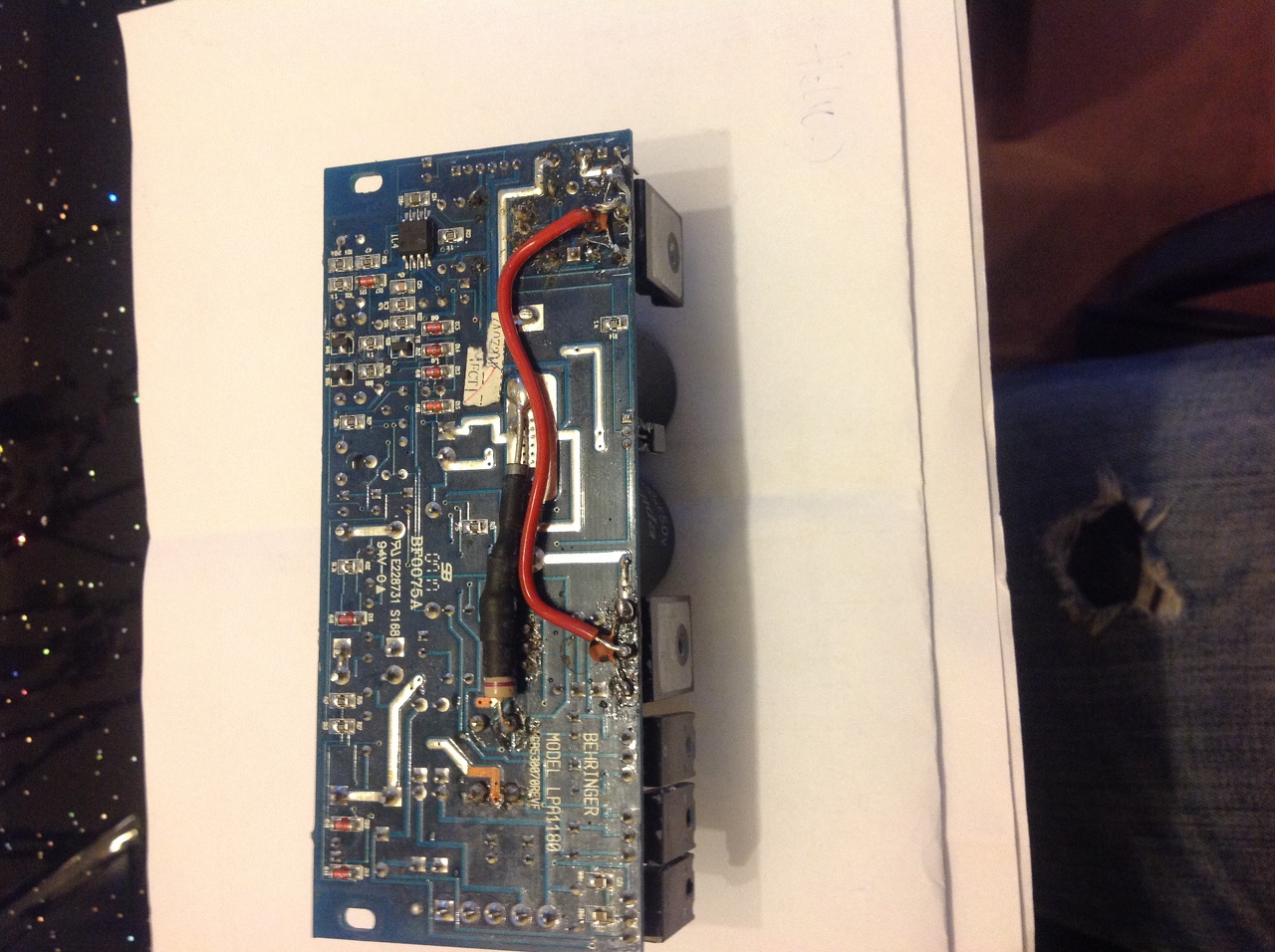 Kaptam egy barátomtól egy Behringer erősítőt. A típusa: PMPS18M. kb. 2 hónapja volt szerelőnél ahol egy vagyont fizetett a javításért. Szétszedve látom csak milyen szép munkát csinált a "hivatalos" Behringer márkaszerviz. Képeket mellékelem. De nem is ez a lényeg. Sokat nem ment az erősítő mert egy házibuliba meglett hajtva. Leverte az órát,és büdös volt a ventilátornál. Ezután, már csak búgott ha bekapcsolta. Letöltöttem a kapcsolási rajzát (LPA1180 rev. F). Szétszedtem,amit láttam a gányolásokon kívül az kb. semmi. Nincs megégve semmi. Méregettem,és az egyik FET (9240) a műszer szerint is full zárlatos volt. Kicseréltem a másik oldali Fet-et (240) is. A meghajtó tranzisztort nem cseréltem ,mert elfejtettem venni.(Tudom nagy hiba) Most ott tartok,hogy ugyanúgy búg az egész. Feszültségeket mértem,azok megvannak mindenhol. Mit kéne cserélnem,vagy mérnem? Köszönöm a segítségeket!