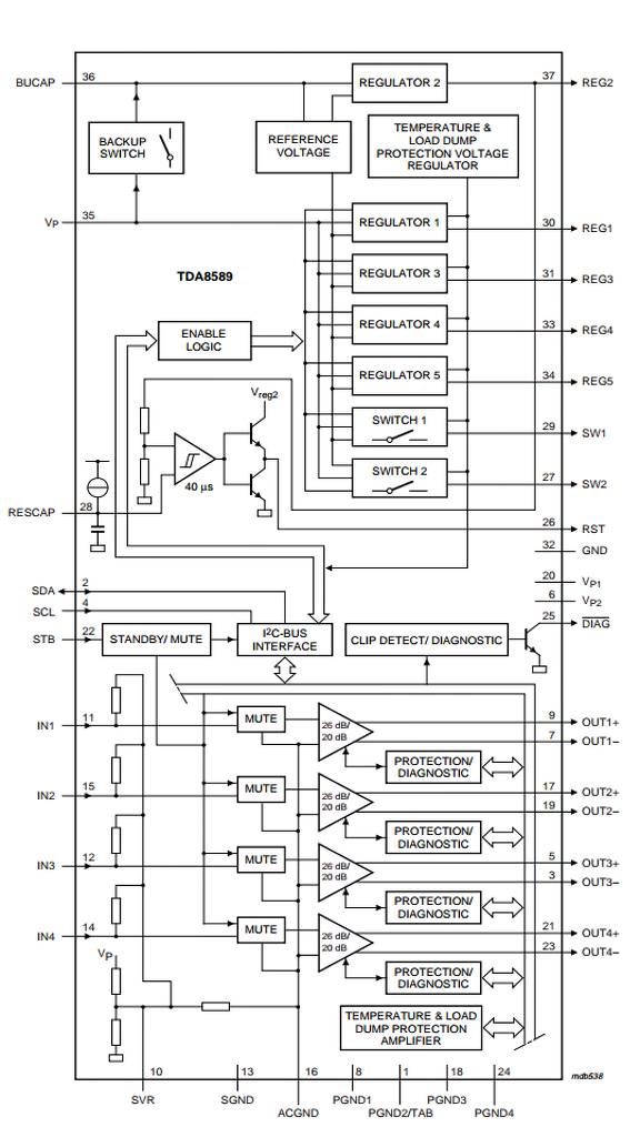 Segítséget szeretnék kérni, van egy SONY CDX-GT111 típusú fejegységem amiről szeretnék meghajtani egy erősítőt ami egy diszkrét mélynyomót fog meghajtani. (Természetesen egy korrekt előfokon és szűrőáramkörön keresztül) A probléma az hogy a fejegység nem rendelkezik LINE OUT csatlakozással és a hangszóró kimenetek földfüggetlenek, ha bármelyik földre ér a vezérlés letiltja a csatornát. Szeretném ha mind a 4 csatorna működne így sajnos az erősítő magas bemenete nem jó megoldás. A probléma megoldását abban látom hogy a fejegység végfok IC-jének (TDA8589) jelbemenetét kivezetem 2db RCA csatlakozóra és arra kötöm rá az előfok nagy impedanciás bemenetét. Jó megoldás lehet ez ebben a formában? Mik a buktatói? Előre is köszönöm a segítséget!