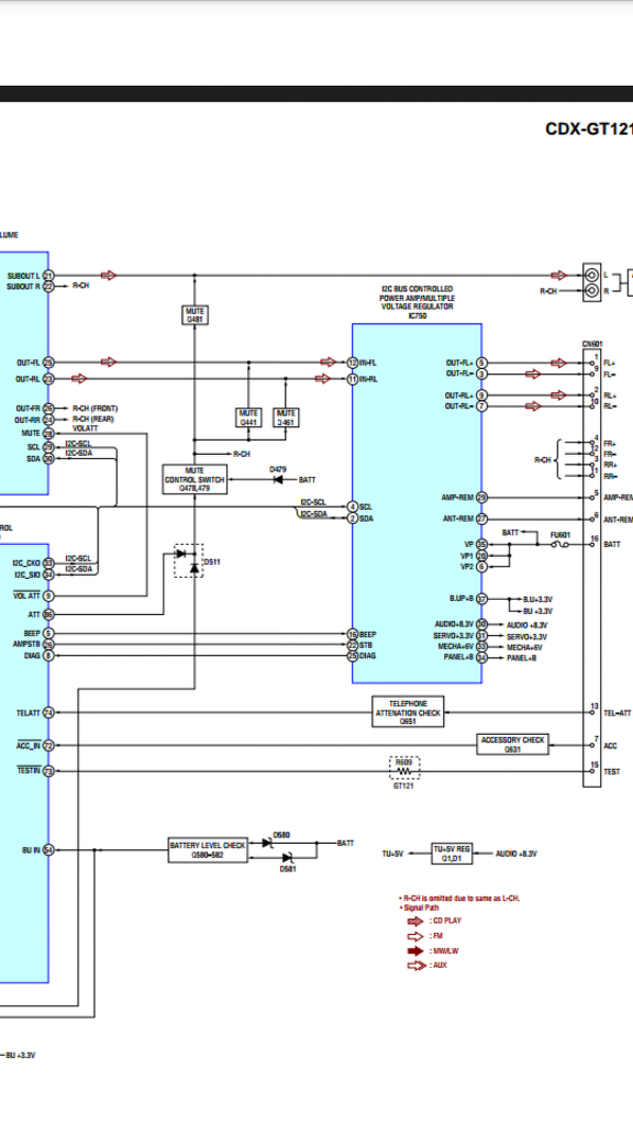 Megtaláltam a megoldást megnèztem egy az enyèmmel szinte azonos fejegysèg service manualját (CDX-GT121) ès ennek pontosan úgy èpül fel a LINE OUT kimenete ahogy èn szerettem volna elkèszíteni.
