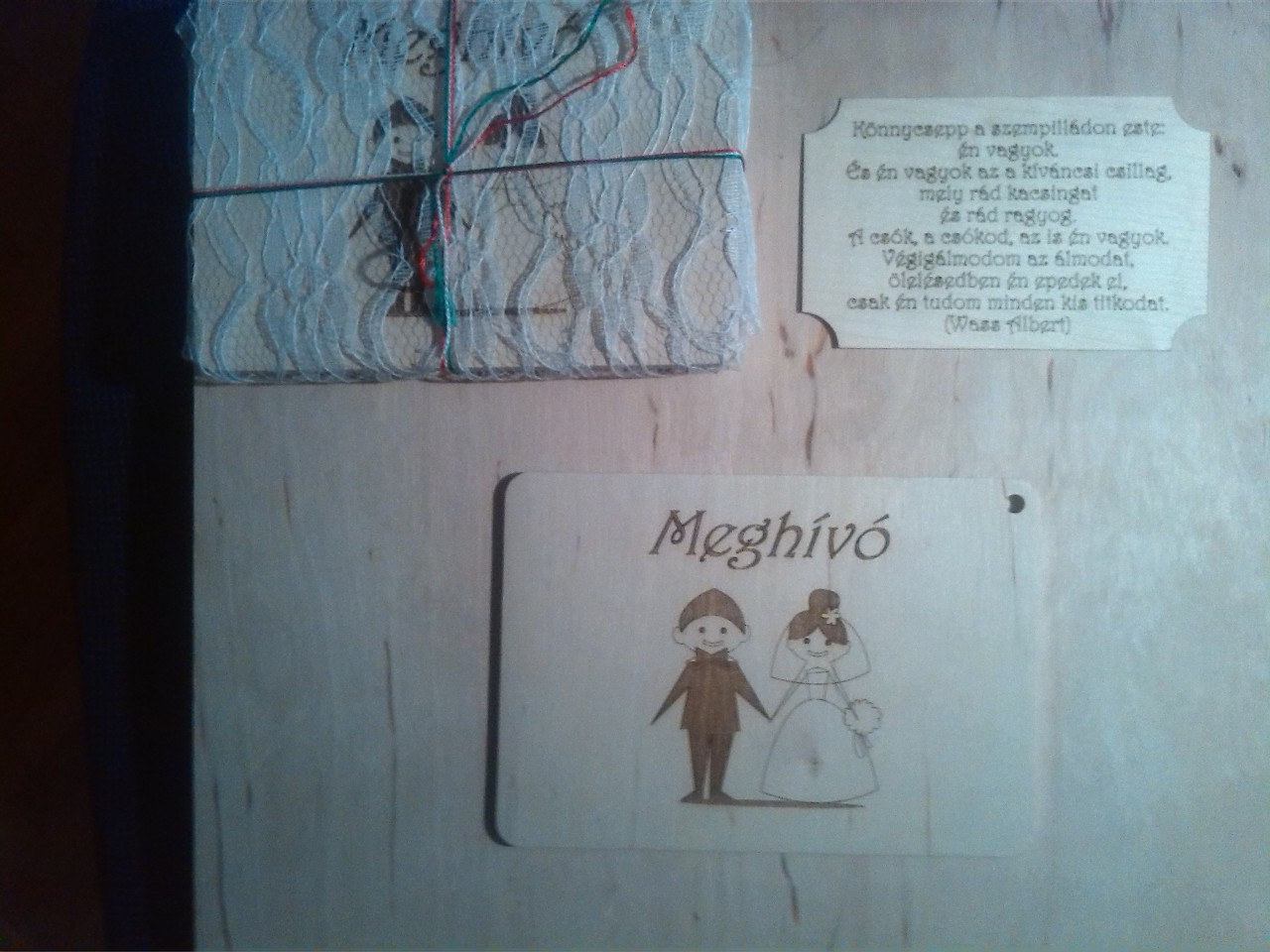 ). Asszonyság is besegített a gyártásba is , és csomagolás a keze munkája. 100% házi géppel készült az esküvői meghívónk. .Az alsó látható lap az persze próbadarab volt. A meghívó kinyitható 3 rétegnyi rétegelt lemezből van ragasztva , egy csap a cnc esztergályos része és egy mágnes ellendarabja legolcsóbb acélból ami a nyitófület tartja. A hozzászólás módosítva: Ápr 5, 2015