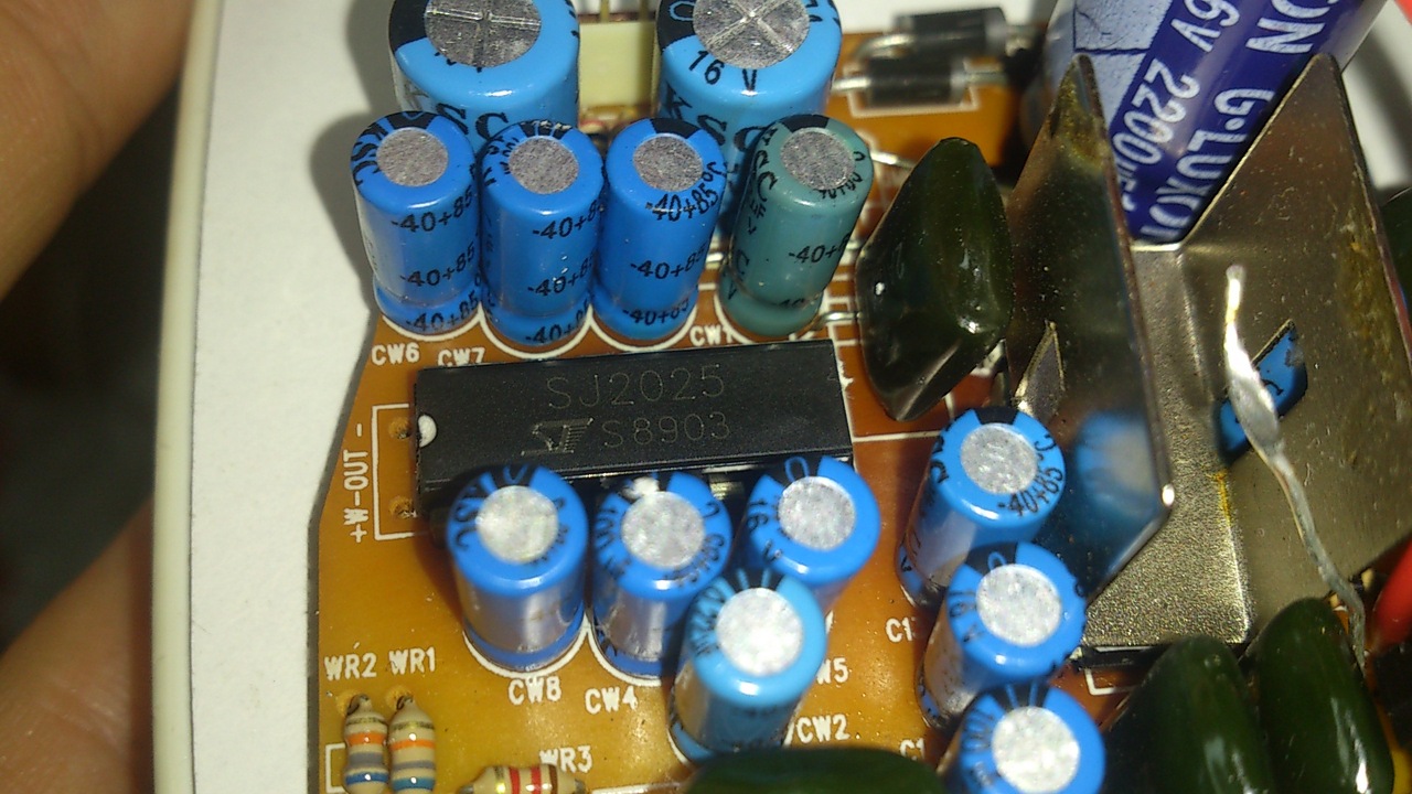Az inkább az IC-től melegedhetett. A funkciótól melegedő kondenzátor teteje fel szokott púposodni, ilyet nem látok rajta.