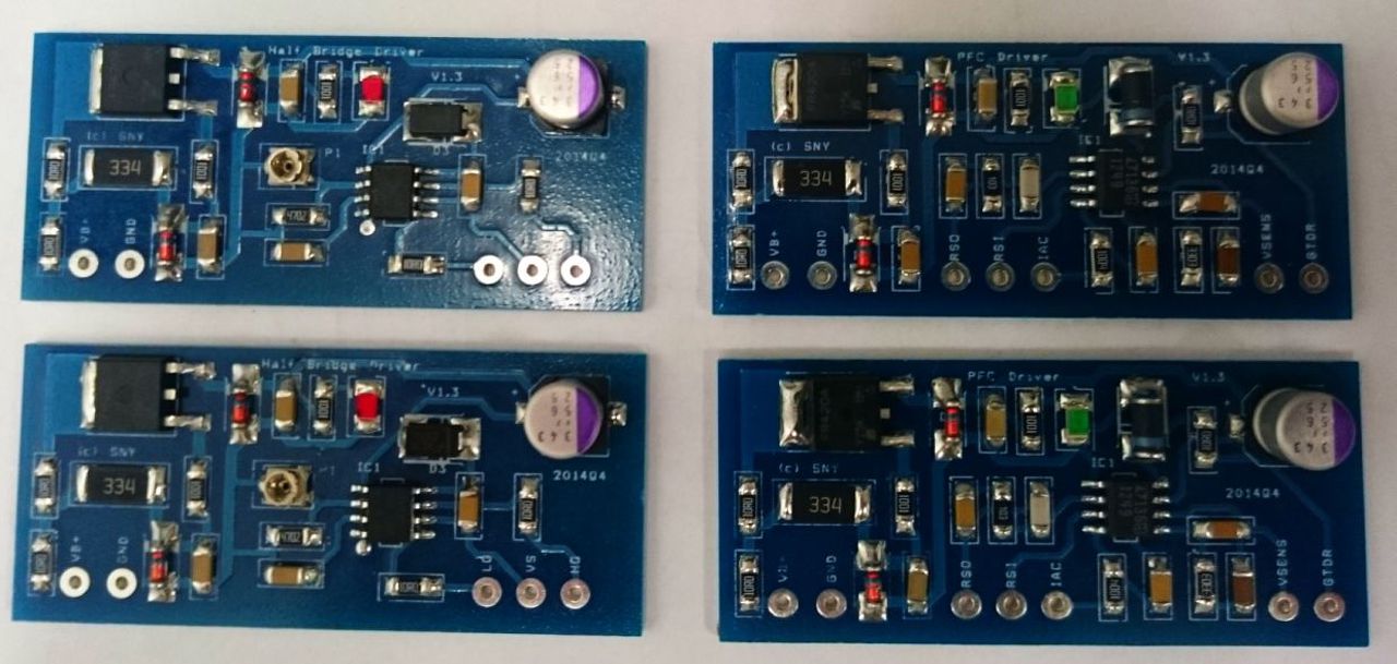 (Ezek sem tökéletesek, mert lemaradt a félhíd meghajtónál egy kerámiakondenzátor, de ennek ellenére tökéletesen működnek. Az én szerencsém annyi, hogy rendkívül alacsony Gate töltésű MOSFET-eket használok.)