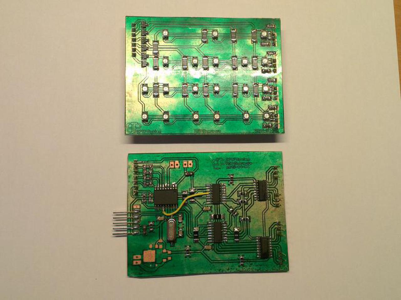 Az ULN2003-at gondolom nem kell bemutatni, szimplán kapcsoló és terhelés mentesítésként van benne, könnyebb volt mint 12 különálló tranzisztort elhelyezni és felszerelni a nyákra.