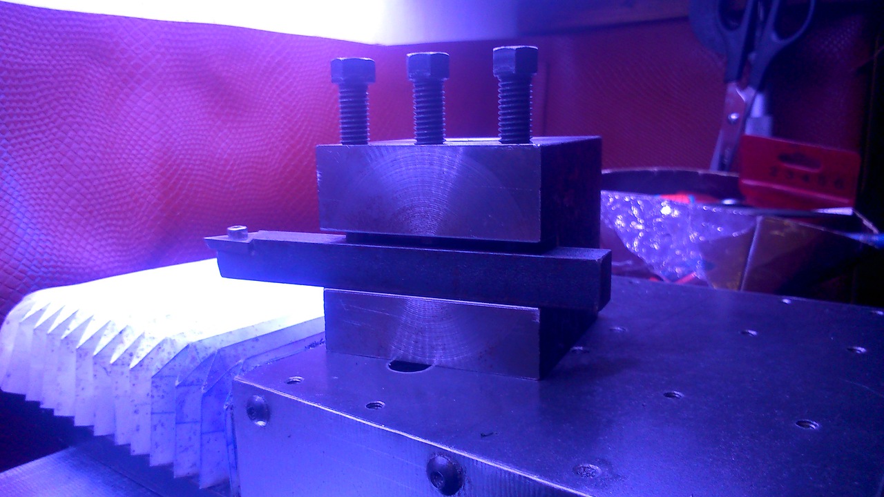 Szép lett, gyorsacéllal talán jobban jártál volna de ahogy írod a marómotor fordulatszáma túl magas és hűteni se volt kedved ráadásul az "érzékenyebb szerszám". Telibe vágva sokkal gyorsabb, bírnia is kellene, majd egy simító fogás. Elvileg beszorulni nem fog. A savállónál az a baj nem akarja a forgács elvinni a forgácsolás hőjét ezért a szerszám és az anyag kapja meg. Szerszámra kenődés meg folyamatosan koptatja a szerszámot. Éles szerszám kell hozzá, az a gyorsacél de azt bő hűtés nélkül lehetetlen használni. Vannak már kifejezetten éles keményfém marók de a többségük tompa a porkohászati voltuk miatt-azaz nem lehet kisebb rádiusz az élén mint az elemi por amiből csinálják.