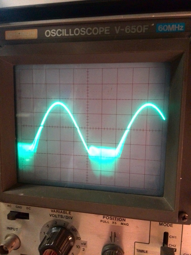 Üdv! Beforrasztottam az 1n+1k tagot az 5 és 6 lába közé. Elég érdekes lett a jel, a szinusz beszőrösödött, csináltam képeket is. Ez a szőrösödés csak terheletlen állapotban volt, terhelve ki símúlt a jel.