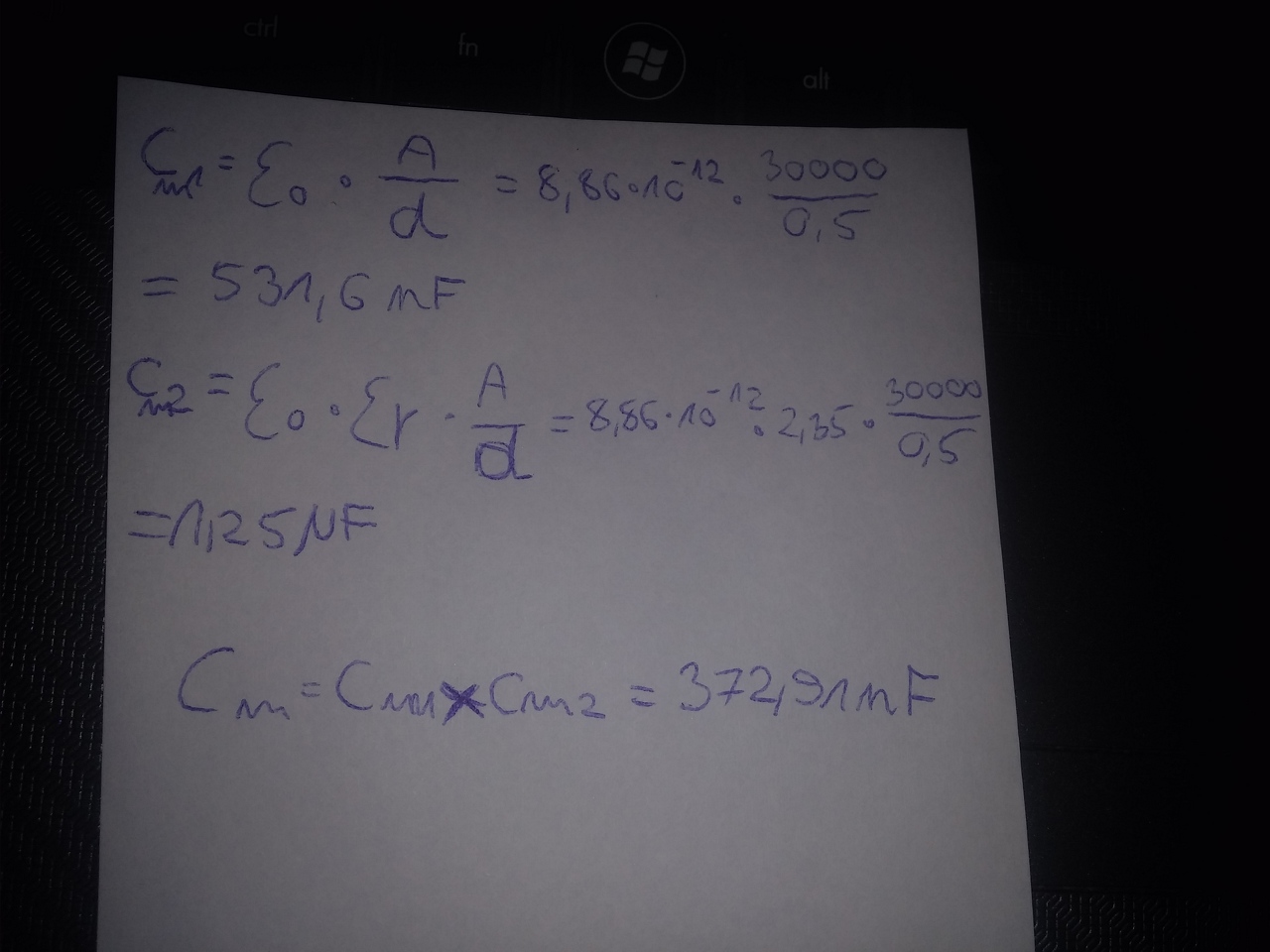 Hogyan tudom kiszámolni ennek a kondenzátornak a kapacitását. Az oké hogy E0*Er*A/d de ebben az esetben, ha a d egyik fele fólia, másik fele levegő, mi a teendő?