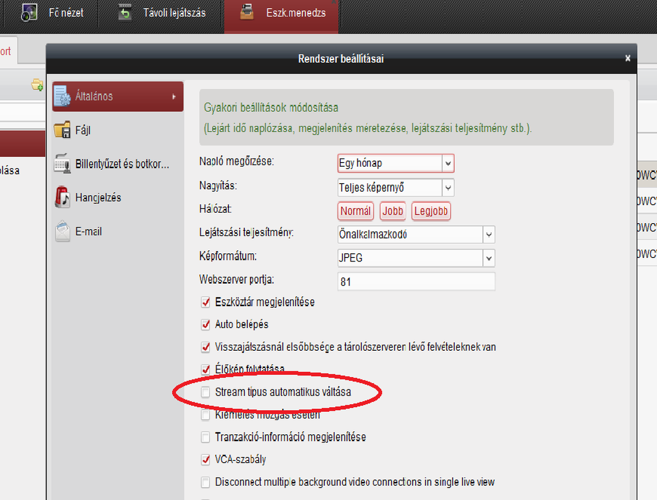 A substream kisebb felbontású, ez kevésbé terheli a gépet. Elvileg a gyári beállítás szerint 9 vagy több kamera együttes megjelenítésekor átvált az IVMS substreamre. Ha kiveszed az automatikus váltást az Eszközök->Rendszer menüpontban, (1. melléklet) akkor az általad beállított streamet fogja használni. Streamek közt úgy tudsz váltani, hogy a fő nézetben a kamera nevén jobb klikk... (2.melléklet.) Üdv.