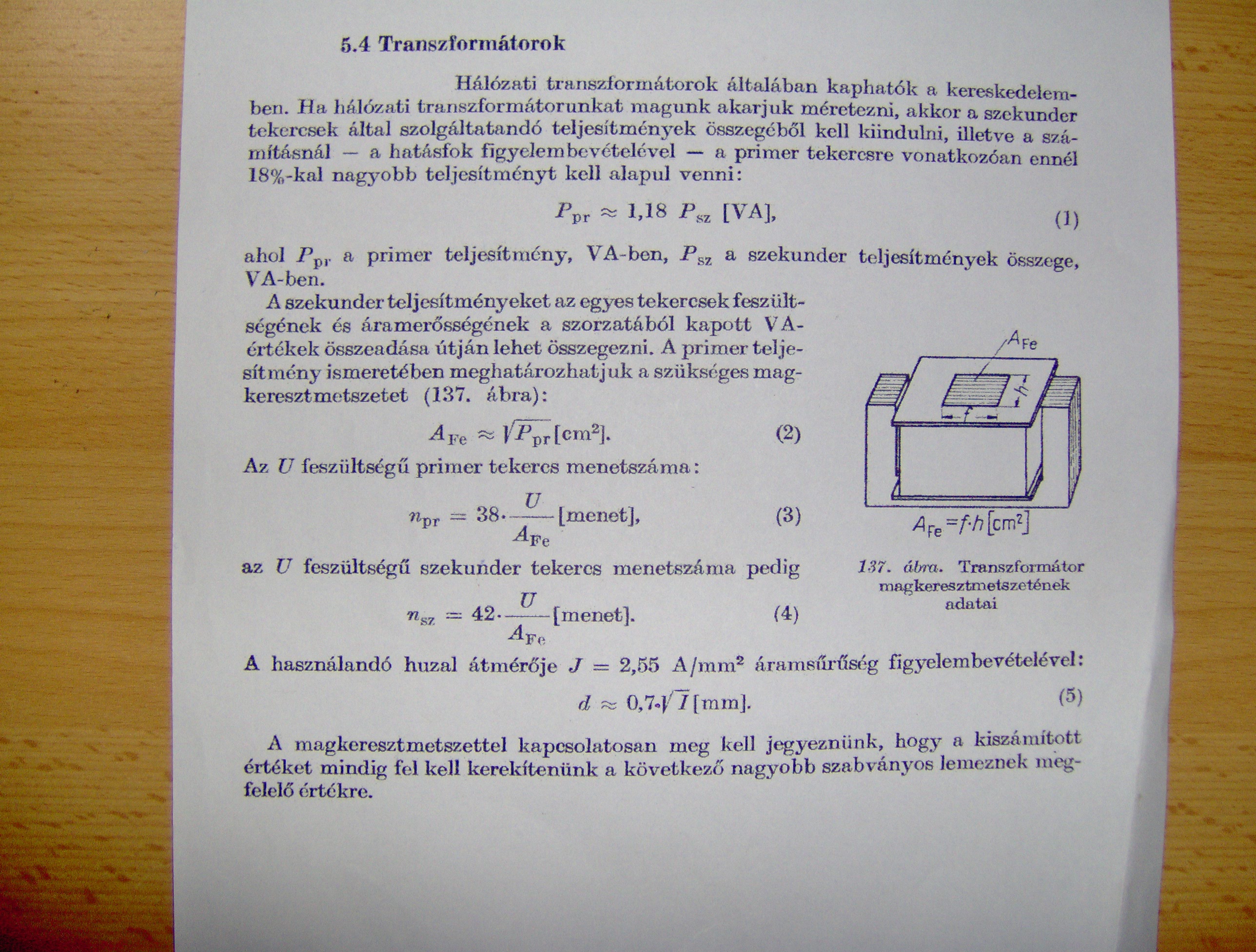 Szerintem a huzal vastagsága az áramsűrűséggel (J=2,55A/mm^2) kötődik a trafóhoz. Mivel a leírás hagyományos vashoz készült, ezért nem írja külön változóként.