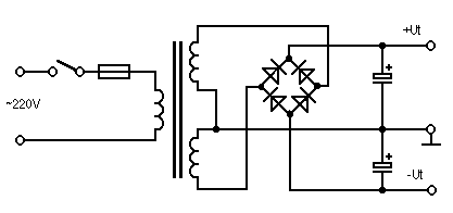 Van egy gyakorlati megfigyelés, miszerint az egyik táp kimaradása tönkreteszi az IC-t, ezért az egyenirányító elé szoktam helyezni a biztosítékot.