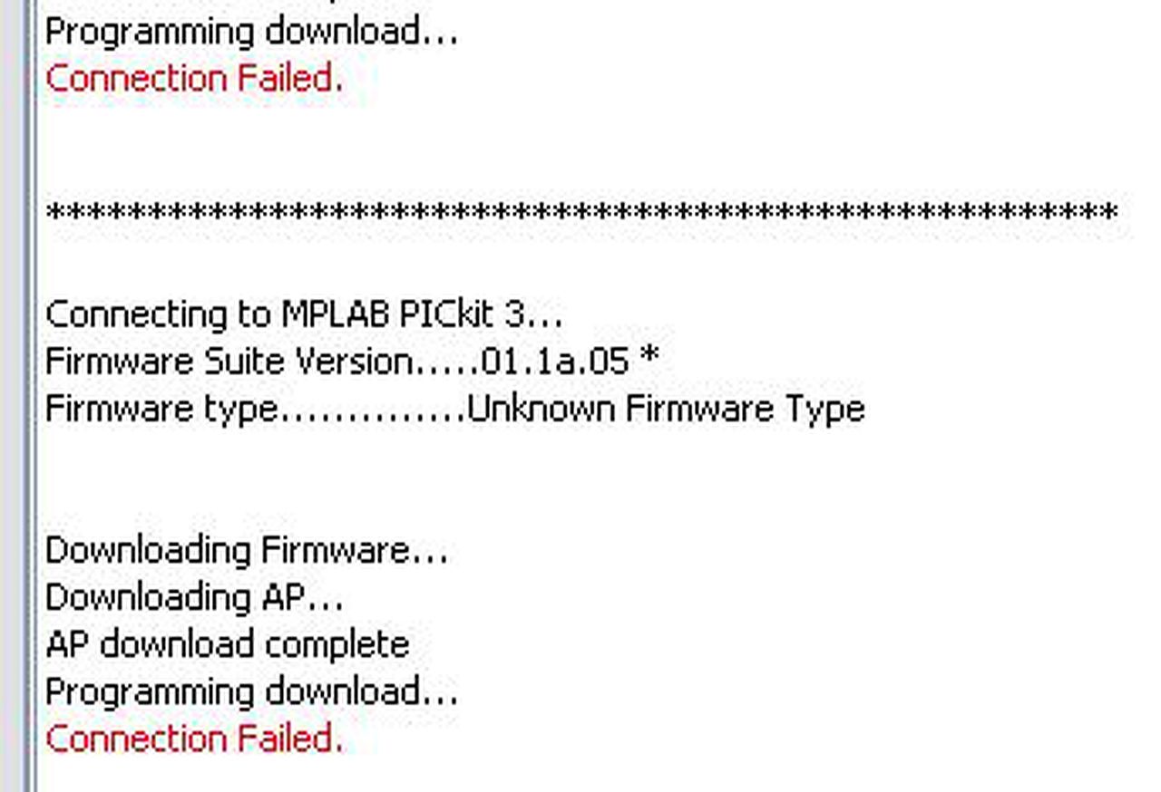 Vissza kellett álítani MPLAB módra a pk3 programmerrel, de most ugyanazt kapom, mint amikor először próbálkoztam, vagy azt mondja, hogy ismeretlen és nem tudja frissíteni connection failed, vagy azt, hogy öreg a firmware.... PK2-őm van, nem akarom ezt is annak használni, de legalább annyi kiderült, hogya hardver jó.