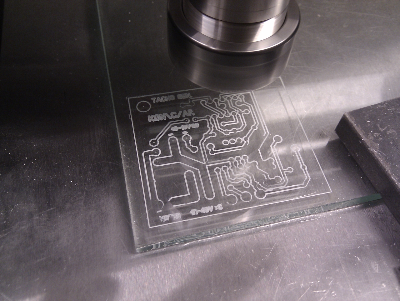 Megpróbáltam üveglapba egy NYÁKtervet gravírozni, de nem is tudtam, hogy egy ilyen üveg foltokban hiányzik. Elöször azt hittem, hogy lepattant a gravírtű hegye.