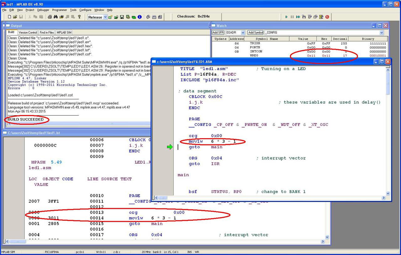 **** Ráadásul, annyit vén fejjel már csak tudok, hogy a 16-os PIC sorozat még nem tud szorzási műveletet végrehajtani, azért volt furcsa a 6*3-1 betöltése a munkaregiszterbe.