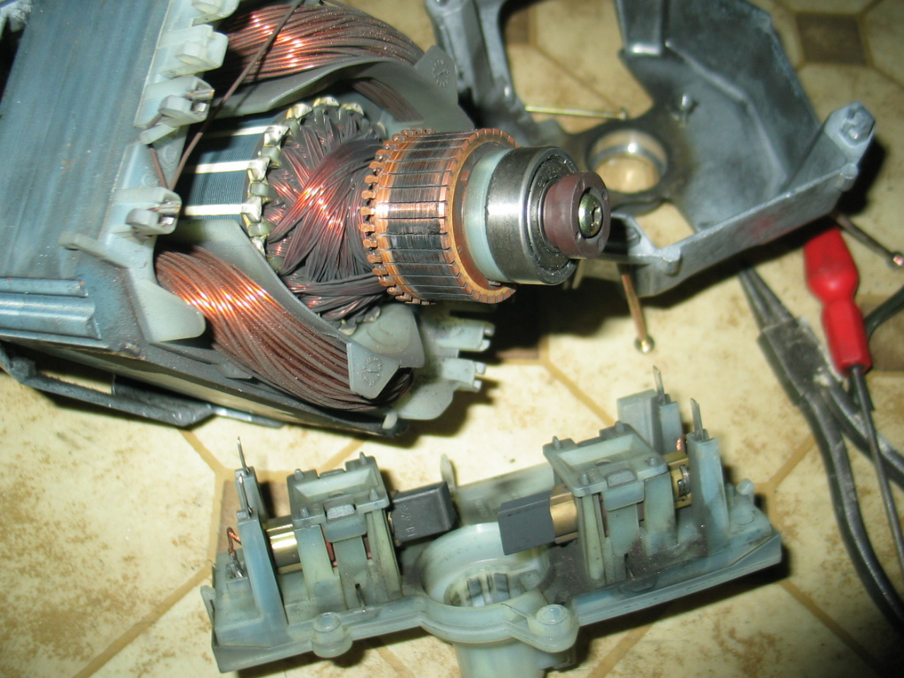 Elsőkörben vedd ki a motort és szedd le róla a 2 szénkefét!ha kisebb mint fél cm akkor csere.a motort fúvasd ki sűrített levegővel,a forgórész kommutátorát is takarítsd ki!