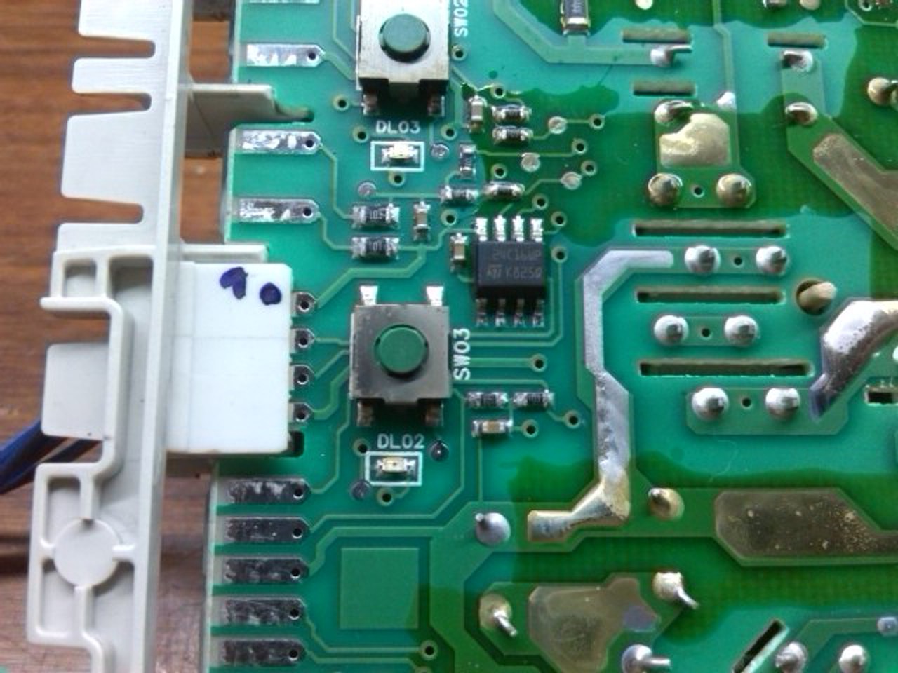 Szomszédom mosógépének a kijelzőt tartalmazó panelja teljesen sötét. A gép megy,mos,hibakód nincs,de mivel ez a panel süket,nem lehet szabályozni a centri sebességét,mosási hőmérsékletet,centri stoppot,stb... Alaplapon ledek működnek,ezen viszont sem a kijelző,sem a ledek nem világítanak.Gép típusa: Bauknecht (Whirlpool) Waprimeline 26TDI. A kijelző paneljét 4 db vezeték köti össze az alaplappal,a csatit én jelöltem meg kiindulási pontnak.Hátha valaki ismeri ezt a típust,és megmondja melyik lábán mennyi V-ot kéne mérni,mert nekem fogalmam sincs. Visszakövetve a 2-3 láb abba a pici IC-be megy,a 4 lába a túloldalra,mintha pozitív lenne. A csati környékén lévő smd ellenállásokat átmértem,szakadás-nyúlás nincs. Köszönöm előre is a segítséget!