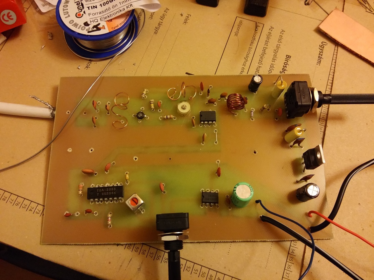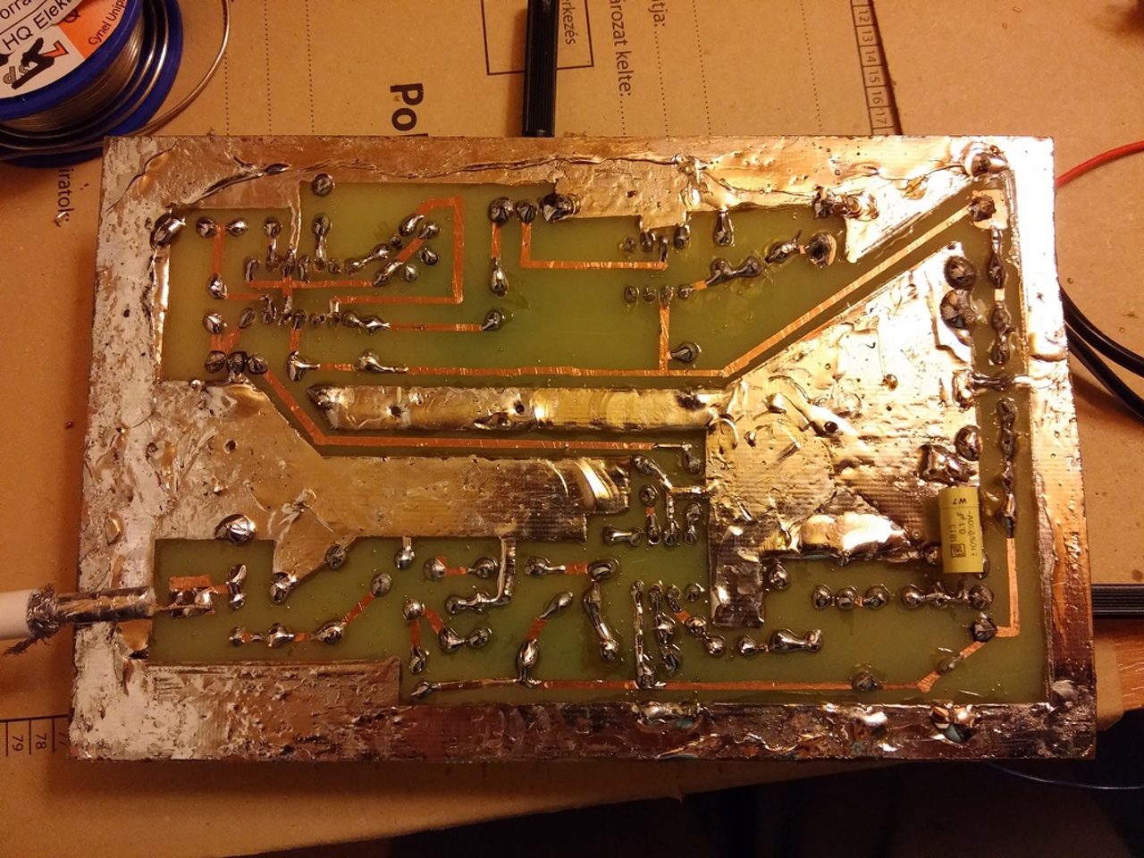 Szendi a fotón ott a terv , de 2oldalas nyák + KF / Keverő fokozat kerülhetne közelebb, + 1 2 tápágban lévő szűrő, csatolás mentesítő elem is hiányzik .Újra kellene tervezni ...