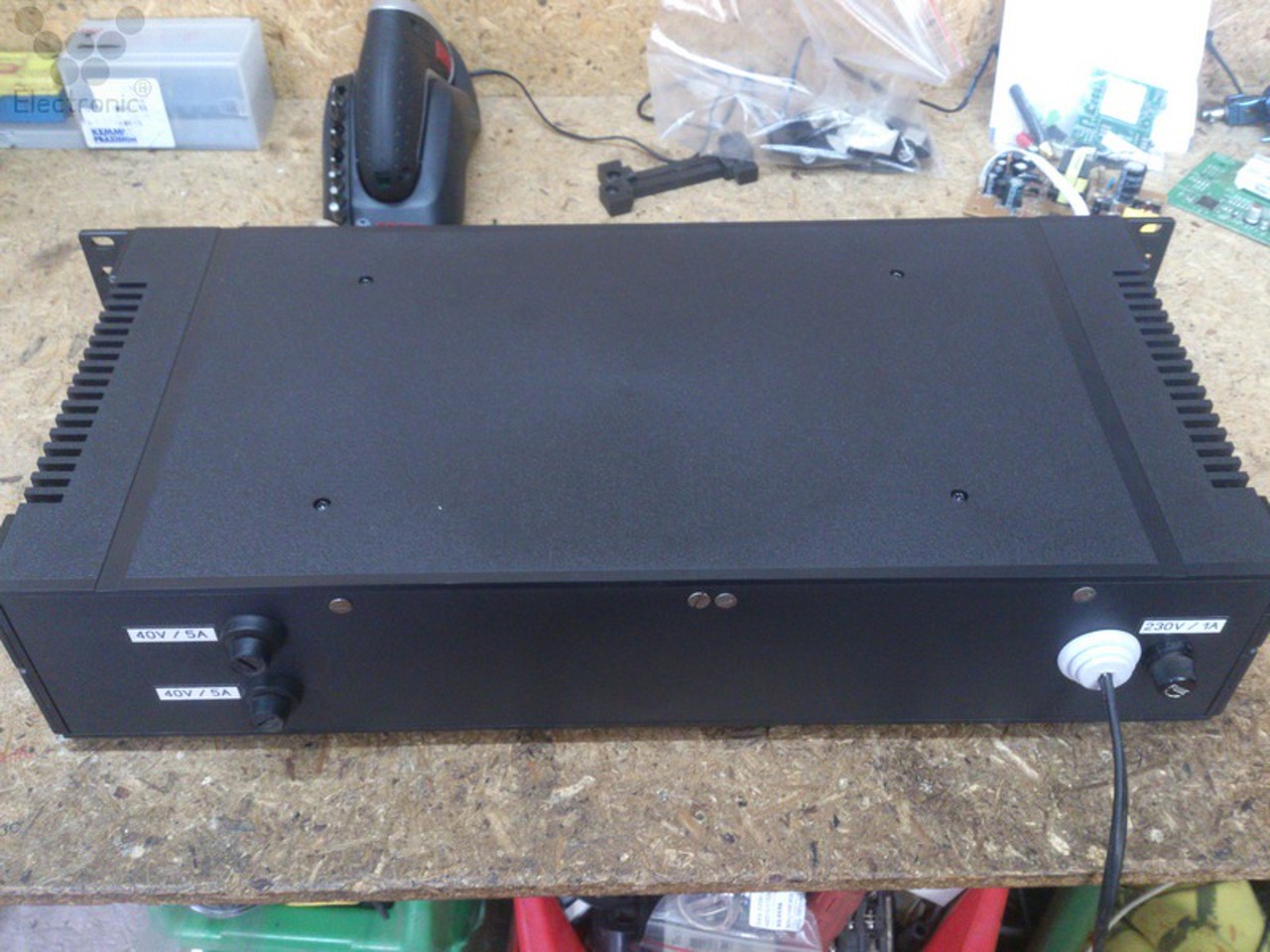 A kimenete 0-35V-ig és 0-4A-ig szabályozható. Ebből van két darab beépítve. Ami híja van még: Az aktív hűtés, potméterek cseréje jó minőségűekre, és két db V/A panelműszer.