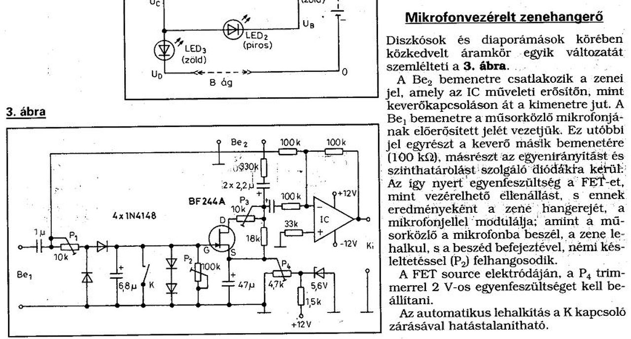 Igen jól érted. Csak itt nem zene, hanem valamilyen zaj fog lehalkulni. Műveleti erősítőnek mehet akár 741 is, ha nem túl magasak a minőségi igények. De szerintem működhet 4558, LM358, TL072 vagy bármilyen hangfrekihez használatos ic-vel. Bár nem próbáltam, de nem látok benne hibát. Egyébként a HE 2000 májusi számában található.