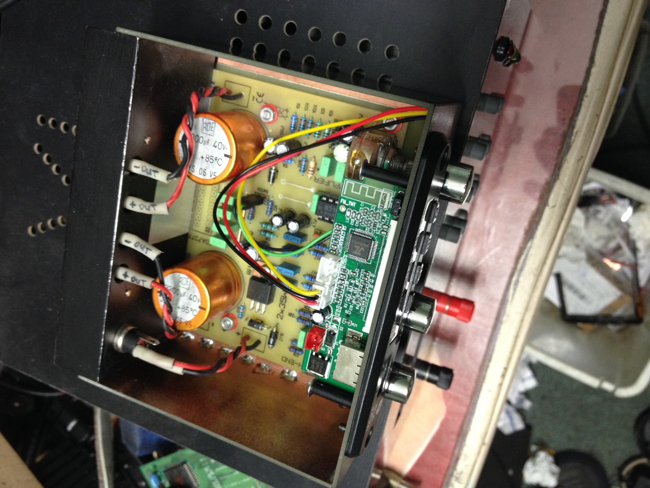 Sziasztok én épp egy erősítő építésében vagyok. Jelenleg úgy ál a segéd feszek megvannak. És. Az előfok műkődik. Be van huzalozva már csak a hűtővorda és végfok panelok kellenek a helyükre.