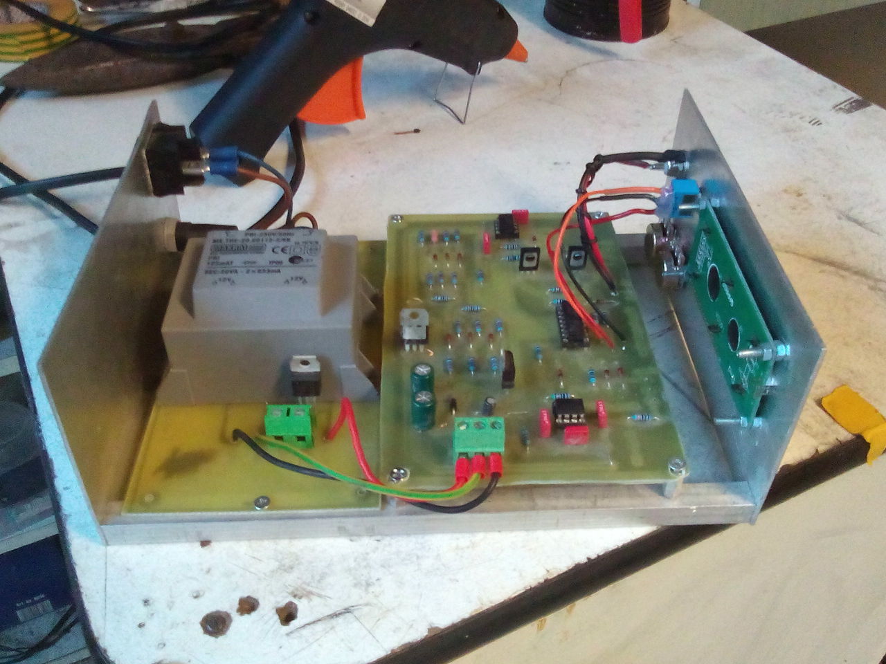 A csomagoláson lehetett volna még igazítani. Például lefesteni a dobozt, Az üres használaton kívüli furatokat, nyílásokat lefedni, dísztelőlapot készíteni. Az a két potméter szerintem nagyon rossz helyen van esztétikailag. Rendes tápot építeni, ne csak lég szerelt tápegység legyen. Egy 10-es skálán: 4.