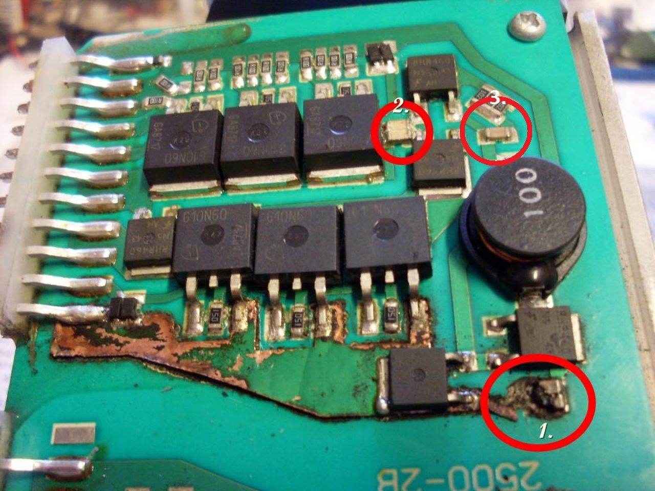 Sziasztök!! Egy Güde inverteres hegesztőm megint nem megy!! Lefüstölt benne egy Zöld 47 ohm 5W ellenállás meg az egyik teljesítmény trazisztor!! Kicseréltem mindkettőt!! Elindul de a főáramköri 30 amperos biztisítékot leveri!! Hol keressem a hibát?? Fotók a gépről régebbi hozzászolásokban!! 31-32 oldal!! Köszönöm!!