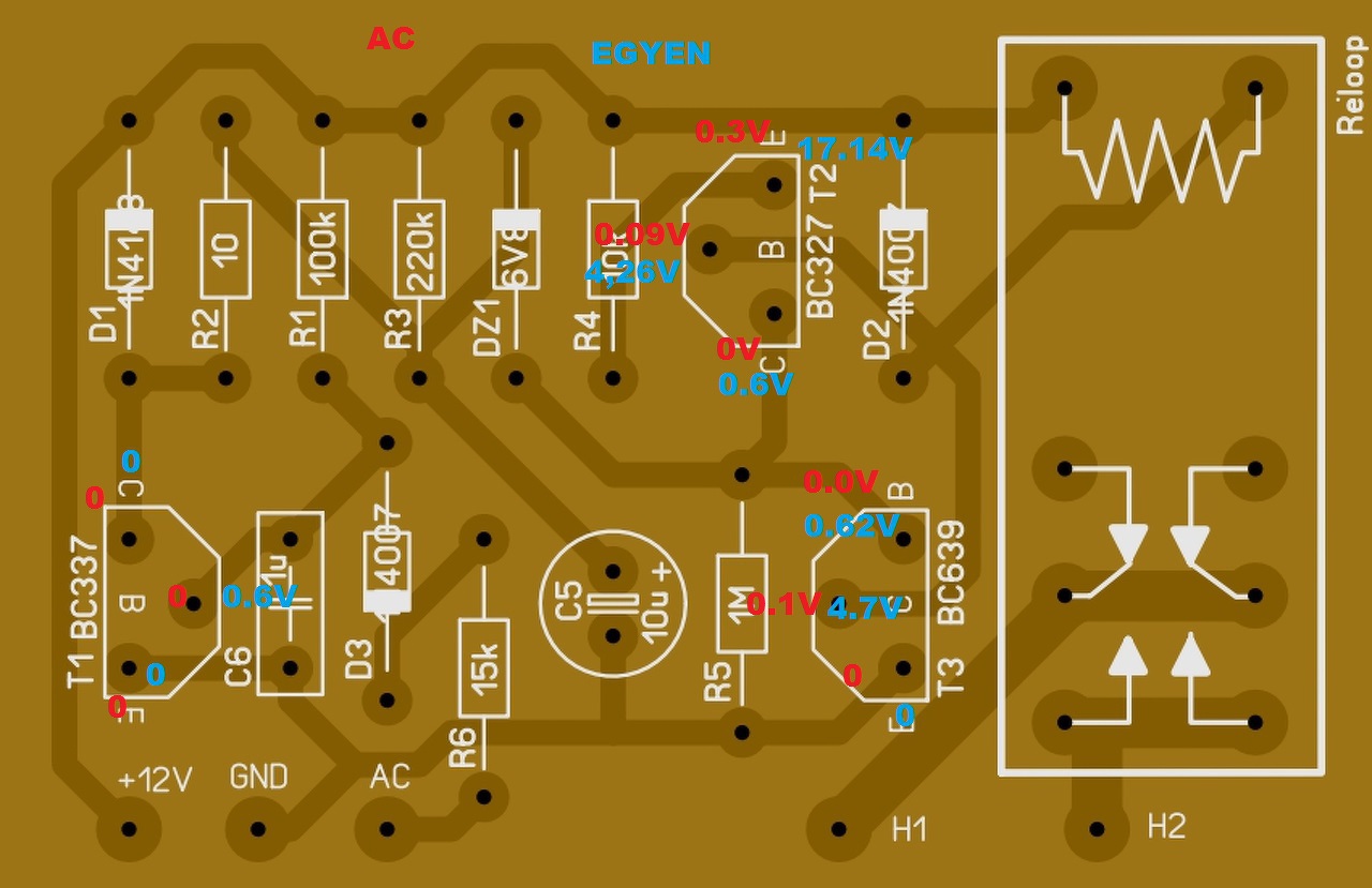 Reloop rajza alapján csináltam. Szerintem nálam van a gond, ezért futok még egy kört, csak jöjjön meg az alkatrész. Alapból amikor beépítettem benne volt D2-csak utána ahogy próbáltam szűrni a dolgokat szedtem ki, rá mértem a diódára, és a multiméter szerint rossz volt, utána cseréltem másikra, de nem ért semmit a csere. Cseréltem tranzisztorokat benne T2, T3, de szintén rögtön zárt a relé.