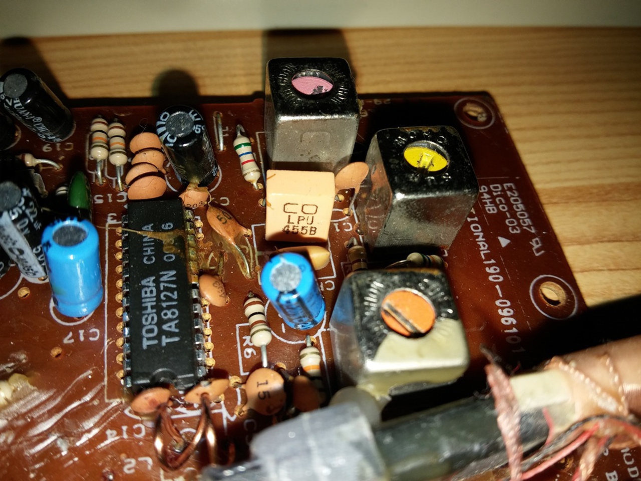A rádió panelén pedig az IC 4-es lábára (ez az AM keverő rész) valóban csatlakozik egy sárga színű hangolómagos KF tekercs és közvetlen mellette pedig van egy LPU455B típusú szűrő is, úgyhogy szerintem meg is van a tekercs ami még kellett. Persze azért még kérnék egy megerősítést is tőletek, mielőtt nekiállok megbontani a panelt. Azért mellékelek néhány képet, hogy biztos legyen. És a tekercs adatokról is egyet a PDF-ből kivágva.