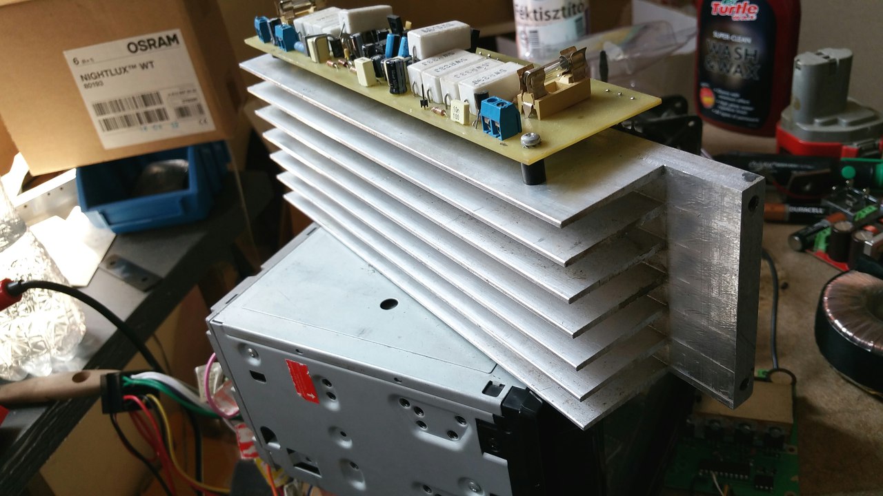 Mellékelek pár fényképet a végfokról, remélem tudok segíteni vele, illetve ha jól értem akkor 4ohmos terhelésre túl nagy a tápfesz, ha csökkentem gondolom kevésbé is melegedne, most hirtelen amit fel tudtam túrni toroidot az +-65V-os egyenfeszt ad le, mekkora hatásfokkal számoljak egy ilyen végfokkal?