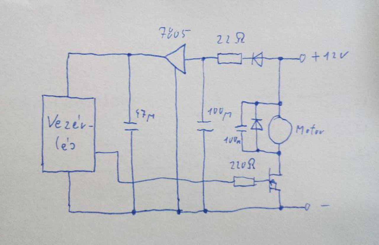 ![]() A motoron van szűrés, más volta a gond. Gyenge volt a pufferkondi, és "megrángatta" a FET a PIC tápját.